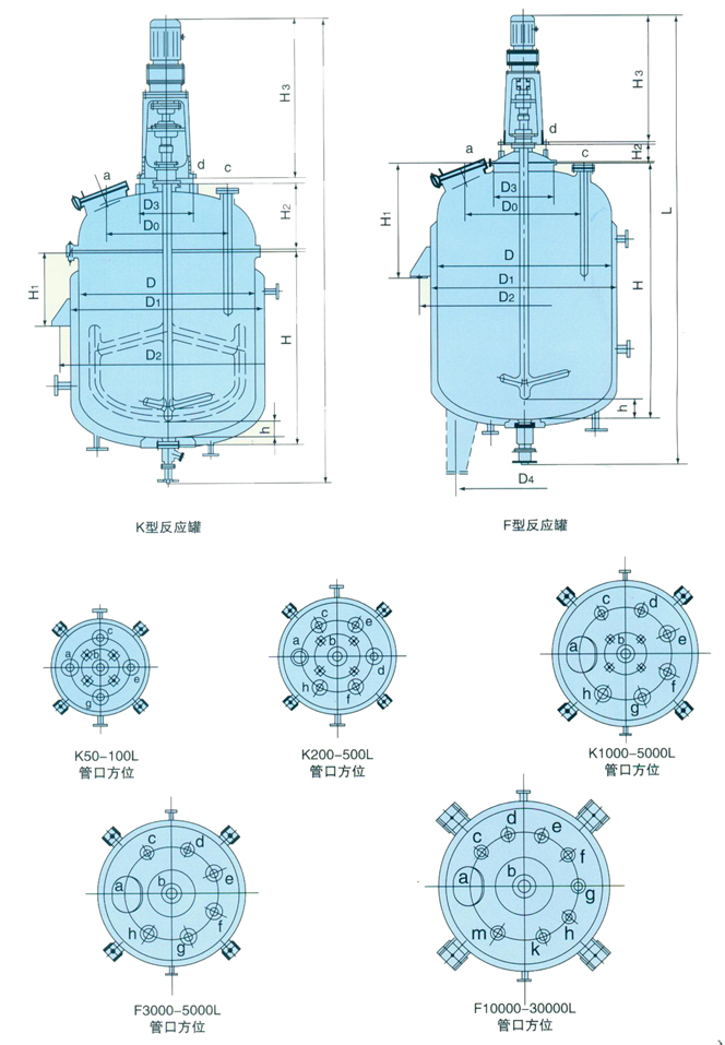 由于用戶(hù)因生產(chǎn)工藝、操作條件不盡相同,夾套加熱型式分為電熱棒加熱、蒸汽加熱、導(dǎo)熱油循環(huán)加熱,軸封裝置分為填料密封和機(jī)械密封,攪拌型式有錨式、漿式、鍋輪式、推進(jìn)式或框式。開(kāi)孔數(shù)量、規(guī)格或其它要求可根據(jù)用戶(hù)要求設(shè)計(jì)、制作。